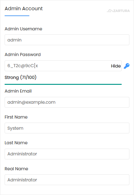 - Admin Username: Your new GRAV username (for security reasons, do not use the administrator or the admin username).